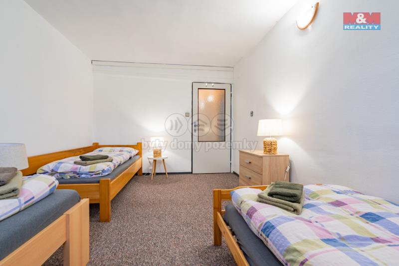 Prostorný rodinný dům se zahradou na prodej v obci Srnín, pouhých 5 km od Českého Krumlova a 24 km od Českých Budějovic. Dům má tři podlaží – v přízemí se nachází garáž, vstupní chodba a samostatný byt 2+1, který je nyní využíván k pronájmu (ubytování v soukromí). Hlavní bytová jednotka 4+1 je ve druhém podlaží a nabízí přímý vstup z obývacího pokoje na terasu a zahradu. V podkroví jsou další tři pokoje, z toho dva mají vlastní lodžii. Vytápění je řešeno kotlem na tuhá paliva nebo plynovým kotlem, dům je napojen na obecní vodu i kanalizaci. Na pozemku se nachází zahradní domek, bazén a dostatek prostoru pro odpočinek. Ideální volba pro rodinné bydlení nebo kombinaci s podnikáním. Pro více informací nás neváhejte kontaktovat.