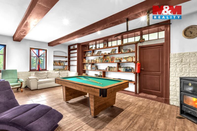Nabízíme k prodeji soubor rodinných domů v obci Mostek, část obce Souvrať. Tato unikátní nemovitost se nachází na okraji obce a pyšní se nádherným prostranstvím, které zajišťuje dostatek soukromí i prostoru pro relaxaci. Je vhodná ke spojení rodinného bydlení s podnikáním. Nemovitost má celkem 9 prostorných místností s užitnou plochou 344 m². Dominantou domu je obývací pokoj s velkorysými rozměry s krbem a podlahovým vytápěním. Vytápění je dále zajištěno zplynovacím kotlem na dřevo. Sousední bývalý taneční sál nabízí nekonečné možnosti přizpůsobení ať už k dalšímu bydlení, nebo ke komerčnímu využití lehká výroba, sklad nebo dílna. V domě se nachází hezký pískovcový sklep. Celková plocha pozemku činí 4173 m², což zaručuje dostatek prostoru pro odpočinek, nebo kreativní využití podle vašich představ. Nemovitost je ihned k nastěhování. Okolí nabízí turistické a cyklistické trasy, v zimě je možné využít nedaleké lyžařské areály. Doporučuji prohlídku.