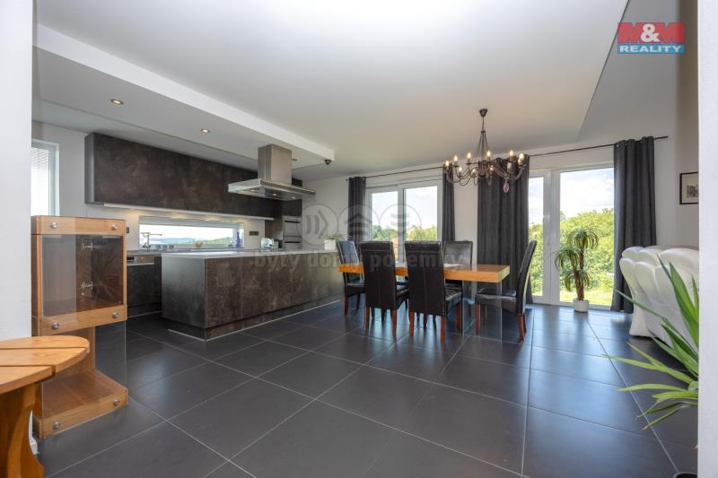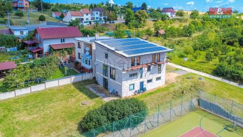 Nabízíme exkluzivní rodinný dům o užitné ploše 360 m² na slunném pozemku 747 m² v klidné části Mistřic. Cihlová stavba v osobním vlastnictví, bez podsklepení a ve výborném technickém stavu, nabízí nadstandardní bydlení ve dvou nadzemních podlažích. V prvním patře je obytná zóna s obývacím pokojem propojeným s jídelnou a kuchyňským ostrůvkem, odkud francouzské dveře vedou do udržované zahrady ideální k odpočinku či grilování. Soukromé patro doplňují dvě světlé ložnice a elegantní koupelna s vanou i sprchovým koutem. Přízemí tvoří samostatný byt s vlastním vchodem, kuchyňským koutem, obývacím pokojem a sociálním zázemím – ideální pro hosty, kancelář nebo pronájem. Součástí je dvojgaráž pro dvě auta a další parkování před domem. Velká okna zajišťují dostatek denního světla. Díky modernímu designu, nadstandardním dispozicím a blízkosti přírody, cyklostezek a sportovišť je dům perfektní volbou pro náročné rodinné bydlení.