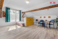 Nabízíme k prodeji samostatně stojící rodinný dům v klidné obci Horní Bousov, nedaleko Mladé Boleslavi. Užitná plocha domu činí 372 m², celková rozloha pozemku je 912 m². Nemovitost je vhodná nejen pro vícegenerační bydlení, ale i jako investice – například k provozování penzionu či ubytovny s kapacitou až 17 lůžek. Dispozice: 1. NP: vstupní chodba, tři samostatné pokoje, prostorný obývací pokoj, kuchyně, toaleta, garáž, technická místnost a byt pro správce. 2. NP: dva pokoje a koupelna s WC. Dále samostatná bytová jednotka 2+kk s vlastním vchodem. Dům má hotové rozvody vody i topení. Vytápění je zajištěno elektrickým kotlem a kotlem na tuhá paliva. Na pozemku se nachází studna s možností využití užitkové vody, zahradní domek a zastřešená pergola. Nemovitost je ideální volbou pro rodiny, podnikatele i investory. Pro více informací a domluvu prohlídky kontaktujte makléře. Pomůžeme Vám i se zajištěním financování.