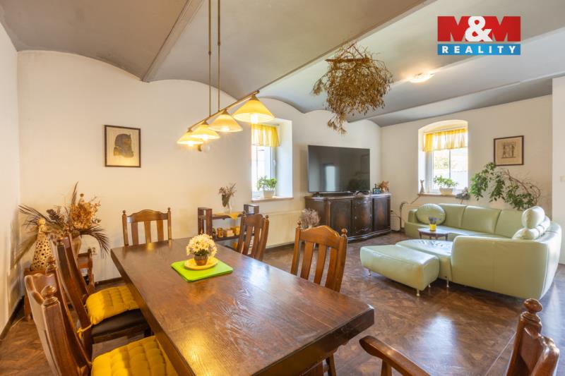 Prodej rodinného domu, bývalého statku, který původně sloužil jako penzion, nyní se jedná o rodinné sídlo v malé obci Očihovec, u obce Blšany, okr. Louny, 6 km ke křižovatce Praha (70 km), Karlovy Vary (50 km), které se rozkládá na pozemku 2572 m². Kolem dvora je obytný dům, velká stodola, podsklepený domek s garáží, pergola a krytý plavecký bazén. Dům je po rekonstrukci, obytná plocha 500 m². Vzhledem k ubytovacím možnostem s koupelnami a velké stodole, je nemovitost byla vhodná i pro podnikání, např. konání svateb atd. V 1.NP se nachází kuchyň, 5 místností, 2 koupelny s WC, 2 komory a technická místnost s vybavením k tepelnému čerpadlu a dvěma bojlery. Ve 2.NP se nachází 6 pokojů a 5 koupelen s toaletou. Dům má novou střechu, fasádu a okna. Je vytápěn tepelným čerpadlem. Jako záložní zdroj je zde automatický kotel na pevná paliva. Elektřinu z větší části zajišťuje fotovoltaická elektrárna. Pitná voda je připojena z vodovodního řadu. Užitkovou spotřebu vody zajišťuje studna.
