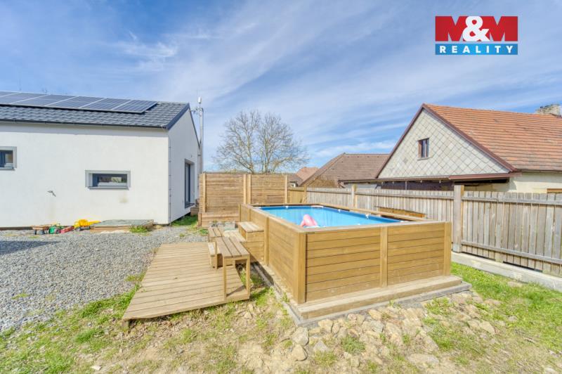 Nabízíme k prodeji novostavbu dřevěného rodinného domu o dispozici 4+kk v klidné části obce Plánice. Dům s užitnou plochou 71 m² je situován na pozemku o výměře 434 m² a nabízí klidné bydlení v příjemném prostředí obklopeném zelení. Nemovitost zaujme praktickým dispozičním uspořádáním i útulnou atmosférou. O tepelný komfort se stará kombinace částečného podlahového vytápění, přímotopů a krbových kamen, která zajišťuje pohodlí po celý rok. Dům je napojen na městský vodovod i kanalizaci. Velkou výhodou jsou instalované solární panely o výkonu 5,5 kW, které přispívají k úspoře nákladů na energie. Na pozemku se nachází stavba sloužící jako dílna či jako praktické zázemí. Velkým benefitem je také venkovní sezení s bazénem, které nabízí skvělé místo pro relaxaci, rodinné chvíle i letní posezení s přáteli. Pozemek je částečně oplocen, dokončení oplocení je na novém majiteli. Tato nemovitost je ideální volbou pro rodinné bydlení i pro ty, kteří hledají únik mimo ruch města.
