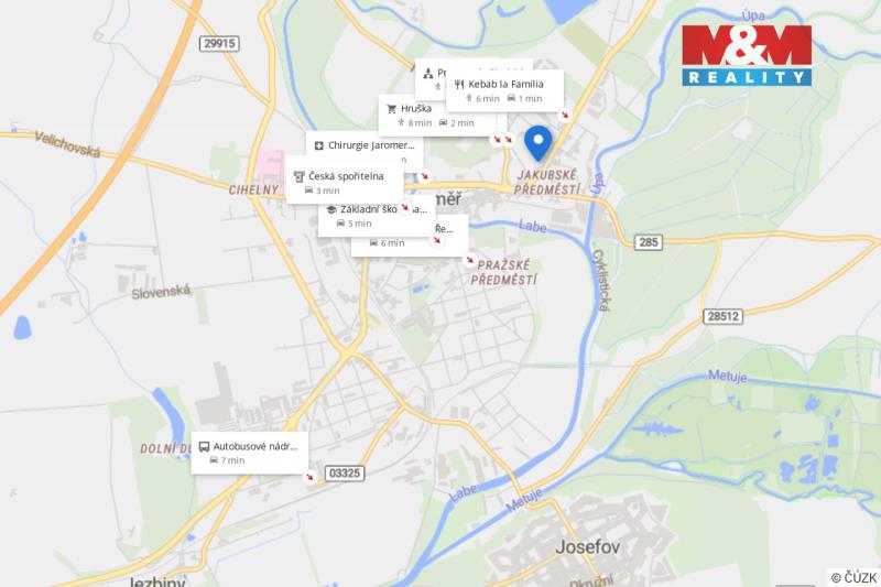 Hledáte zajímavou investiční příležitost? V centru Jaroměře nabízíme dům rozdělený na bytovou a komerční část. Cihlová nepodsklepená stavba disponuje ve dvou nadzemních podlažích užitnou plochou 356 m². K dispozici jsou tři byty (3+1, 2+kk, 2+kk) a dva apartmány (2×1+kk), které jsou již zapsány na katastru. Benefitem jsou 4 garáže se skladovým zázemím o celkové ploše 182 m² s kapacitou až 8 vozidel. V přízemí se nachází společný sklad a technická místnost s plynovým kotlem, který zajišťuje vytápění celého objektu. Nemovitost je situována v klidné zástavbě v bloku, části Jakubské Předměstí. Všechny bytové jednotky prošly rozsáhlou rekonstrukcí a jsou připraveny k okamžitému užívání. Další potenciál nabízí (půdní) nebytový prostor mezi obytnou částí a garážemi, vhodný pro rozšíření bytů. Dům je plně obsazen nájemníky a generuje tedy ihned výnos. Výhodou je možnost koupě jednotlivých bytů, apartmánů i dalších částí samostatně, nebo jako celek. Cena k jednání. Více informací u makléře.