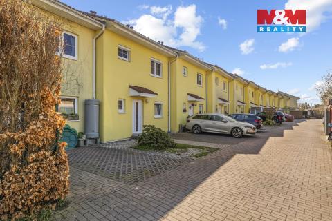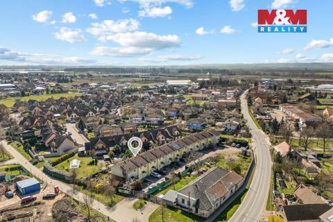 Nabízíme k prodeji, s láskou opečovávaný, útulný řadový dům 3+kk v obci Obříství, kolaudovaný v roce 2009. Dům o podlahové ploše 100 m² (obytná 80 m²) se nachází v uzavřeném, oploceném areálu 12 domů. Přízemí tvoří obývací pokoj s kuchyňským koutem (29,5 m²) se vstupem na terasu (22 m²) s pergolou, dále WC, předsíň a technická místnost. V patře jsou dvě ložnice (18 m² a 12,5 m²) a koupelna s vanou a WC. Podkroví slouží jako úložný prostor. K domu náleží zahrada (50 m²) a 2 parkovací stání. Energetická třída B, nízké měsíční náklady cca 3 500 Kč. Vytápění elektrickými přímotopy v kombinaci s krbem, ohřev vody bojlerem (2023). Dům je vybaven klimatizací, předokenními roletami a novými vstupními dveřmi (2023). Tato nemovitost je ve výborném stavu. Dům je čerstvě vymalovaný, interiér je připraven k doladění dle představ nového majitele (dveře, podlaha). Na zemi je podklad pro plovoucí podlahu. Klidná obec s kompletní občanskou vybaveností, pouhých 12 km od Prahy.
