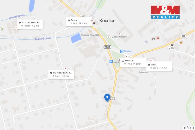 Nabízíme k prodeji prostorný rodinný dům s dispozicí 4+1 v obci Kounice v okrese Nymburk. Nemovitost poskytuje dostatek prostoru pro pohodlné bydlení a široké možnosti využití. Součástí je velká stodola, ideální pro parkování, dílnu, skladování nebo jiné účely podle vašich potřeb. K dispozici je také chlév, který lze rekonstruovat na praktickou dílnu nebo samostatnou garsonku. Na zahradě najdete prostor pro venkovní posezení, grilování a relaxaci s rodinou či přáteli. Parkování je možné přímo na pozemku. Dům se nachází v blízkosti centra obce s výbornou dopravní dostupností – nájezd na dálnici D11 (směr Praha - Hradec Králové) je vzdálen pouze přibližně 5 km, což zajišťuje rychlé spojení do Prahy. Městys Kounice je malá, ale živá obec s dobrými službami, jako je základní a mateřská škola, obchod a základní infrastruktura. Pokud hledáte dům s velkým zázemím, praktickým umístěním a potenciálem pro úpravy, tato nemovitost je pro vás ideální volbou. Kontaktujte nás pro více informací