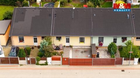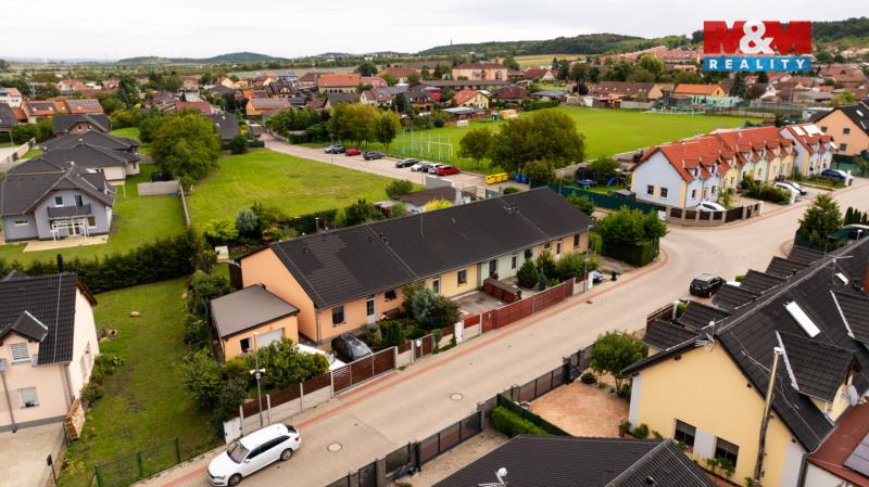 Nabízíme k prodeji novostavbu řadového rodinného domu o dispozici 3+kk, s užitnou plochou 91 m², nacházející se na slunném pozemku o celkové výměře 266 m² v klidné části obce Postřižín, okres Praha-východ. Dům je vybudován z kvalitní cihlové konstrukce a nabízí moderní a komfortní bydlení. Hlavním prostorem je prostorný obývací pokoj s kuchyňským koutem a jídelní částí, ze kterého je přístup na terasu s pergolou. Dále jsou zde dvě ložnice, koupelna s vanou a sprchovým koutem a samostatná toaleta. Technické zázemí zahrnuje technickou místnost, kde je umístěný el. bojler, půdní prostor a zahradní domek. Vytápění zajišťují elektrické panely, okna mají venkovní elektrické rolety. K dispozici klimatizace. Lokalita nabízí veškerou občanskou vybavenost a skvělou dostupnost do Prahy.