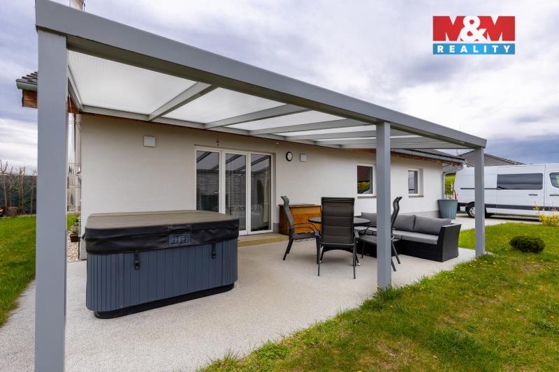 Nabízíme k prodeji moderní jednopodlažní rodinný dům o dispozici 4+kk, v klidné obci Starý Mateřov, situovaný na rovinatém pozemku o ideální výměře 627 m². Dům byl kolaudován v roce 2019 a splňuje požadavky na komfortní a úsporné bydlení. Nemovitost se nachází v klidné části nově vzniklé rezidenční lokality, která nabízí příjemné a bezpečné prostředí pro rodinné bydlení. Dominantou domu je prostorný a světlý obývací pokoj s kuchyňským koutem, ze kterého je přímý vstup na zastřešenou terasu – ideální místo pro relaxaci i posezení s rodinou či přáteli. Součástí je okrasná zahrada s minimálními nároky na údržbu, která poskytuje dostatek soukromí i prostoru pro odpočinek. Dům je napojen na veškeré inženýrské sítě – veřejný vodovod, elektřinu, plyn a kanalizaci. Vytápění zajišťuje kombinovaný plynový kotel, alternativně lze také využít krbová kamna pro vytvoření příjemné atmosféry. Nemovitost nabízí moderní a energeticky úsporné bydlení v klidné lokalitě s výbornou dostupností do Pardubic.