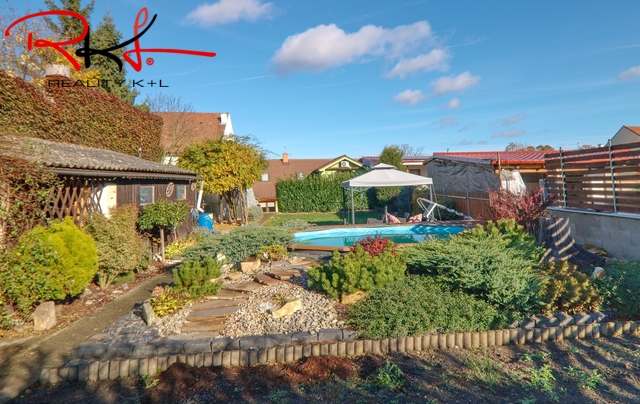 • na pozemku kolna, skleník, venkovní krytá kuchyně, bazén, pergola, okrasné traviny a dřeviny