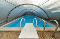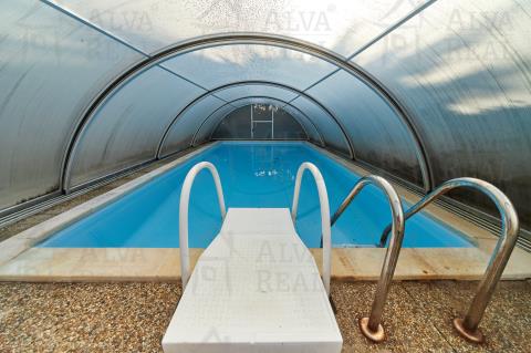 Exteriér domu nabízí zastřešenou pergolu s letní kuchyní včetně krbu, grilu a udírny. Celoročně vytápěný bazén se zastřešením. Zásobník na dešťovou vodu 1 m³. Vzrostlý živý plot poskytující soukromí na zahradě. Členění oplocení přizpůsobeno oddělenému pohybu hlídacího psa, zateplená bouda. Prostorná dvojgaráž s dálkovým el. ovládáním vrat a brány.