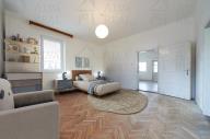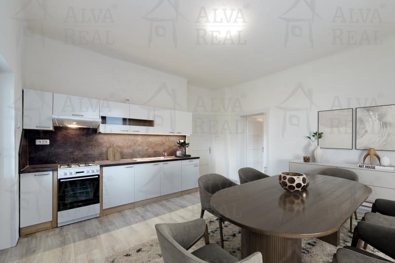 2. NP: současně byt 3+1: 2 neprůchozí pokoje + 1 průchozí pokoj, všechny s parketami a kobercem; kuchyně s kuchyňskou linkou a plynovou varnou deskou, příprava pro myčku; koupelna s WC, sprchou a vanou; zimní zahrada; spíž.