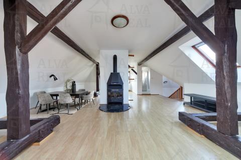 3. NP: podkrovní byt: krbová kamna; koupelna se sprchou a WC; prostor pro umístění kuchyňské linky; střešní terasa, která díky své poloze zajištuje i soukromí před pohledy s okolí.