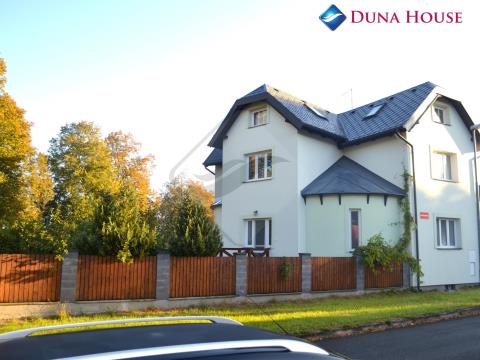K prodeji nabízíme kompletně zrekonstruovanou prvorepublikovou vilu v klidné lokalitě Čelákovic. Vila je dispozičně rozdělena na dva oddělené byty s vlastními zahradami. Zároveň je také celý objekt podsklepen a suterén je samostatně přístupný. Zmíněné tři celky je možné nechat oddělené, nebo je jednoduše propojit. Všechny tyto samostatné jednotky mají vlastní vodoměry, elektroměry a vlastní plynový kotel, který slouží jak k ohřevu teplé vody, tak k vytápění. V prvním nadzemním podlaží se nachází předsíň a navazující chodba se schodištěm a vstupem na oddělené WC. Z této chodby se dostanete do obývacího pokoje a ložnice. Dále se zde nachází samostatná kuchyně a dvě menší místnosti v půlkruhových arkýřích. Tato přízemní jednotka je tedy dispozičně řešena jako 4+1. Ve druhém nadzemním podlaží a v podkroví se nachází druhá mezonetová jednotka o dispozici 5+1, přičemž ve druhém podlaží se nacházejí dva pokoje, kuchyně a koupelna, v podkroví poté nalezneme tři pokoje a další koupelnu. K této jednotce náleží také balkón. Přízemní jednotka má výměru cirka 80 m² a mezonetová 136 m². Každá jednotka má také svojí zahradu a kůlnu. Celý dům prošel kompletní rekonstrukcí dokončenou v druhé polovině roku 2022. Byly vyměněny všechny rozvody, napojení na vodu a kanalizaci, dále nainstalovány nová okna, zrenovovány podlahy a na některých místech položeny podlahy nové. Dům má nově zateplenou fasádu i střechu. V domě jsou instalovány již zmíněné plynové kotle. Okna jsou nyní plastová dvojskla. Zachovány jsou původní dřevěné obložkové dveře, které byly v rámci rekonstrukce zrestaurovány. Jedná se skutečně o unikátní nemovitost v pokojné části Čelákovic. Okolí Vám nabídne veškerou potřebnou občanskou vybavenost. Do 500 metrů od vily naleznete školu, školku, obchody, restaurace, kavárny, hřiště, sportoviště a mnoho dalšího. Do centra města se dostanete za pět minut. Výhodou je také velice dobrá dostupnost do Prahy, osobním vozem se dostanete na Černý Most do 20 minut. Možnost parkování je potom přímo před domem. V blízkosti se také nachází vlaková stanice, ze které každou půl hodinu jezdí vlak do Prahy. Pokud budete mít zájem si tuto krásnou vilu prohlédnout, jsem Vám kdykoliv k dispozici.