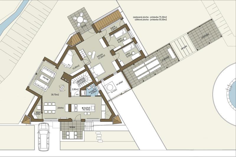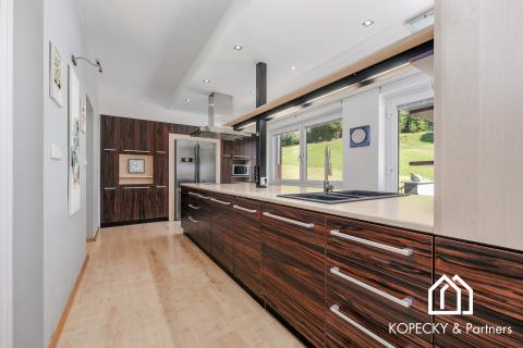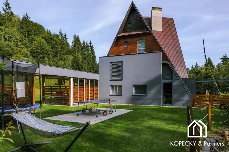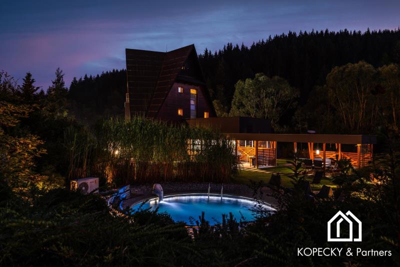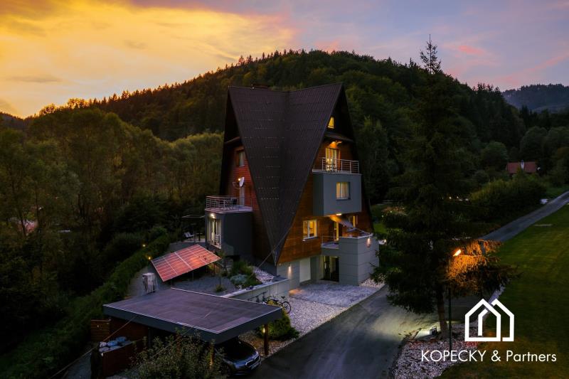 Realitní kancelář KOPECKY RealEstate & Partners, s.r.o. má tu čest představit vám exkluzivní nabídku prodeje Vily Anna – jedinečného skvostu v srdci Valašska a Beskyd. Vila Anna je mistrovským dílem uznávaného architekta Jaroslava Kopeckého, která spojuje eleganci, komfort a moderní technologie v harmonickém souladu. Tato výjimečná nemovitost nabízí užitnou plochu 431 m2 a rozkládá se na rozsáhlém pozemku o velikosti 7 350 m2, což zaručuje naprosté soukromí a klid. Unikátní architektura a luxusní interiér: Vila je postavena na trojúhelníkovém půdorysu a disponuje čtyřmi patry s plně vybavenými apartmány. Každý detail byl pečlivě promyšlen, aby poskytoval maximální komfort a estetický zážitek. Moderní kuchyně s exkluzivním vybavením vám přinese radost z vaření, zatímco otevřený obývací prostor je ideální pro setkávání s rodinou a přáteli. Dechberoucí výhledy a slunné terasy: Každý apartmán nabízí nádherný výhled do okolní přírody, což zajišťuje naprostý klid a pohodu. Terasy jsou zalité sluncem od brzkých hodin, takže si zde můžete v příjemné atmosféře vychutnat vaši ranní kávu. Moderní technologie a ekologický provoz: Vila Anna je vybavena nejmodernějšími technologiemi pro maximální komfort a soběstačnost. Konstrukce domu je z monolitu (železobetonu), zateplená polystyrenem, s hliníkovou střechou zateplenou minerální vatou. Energetický provoz zajišťuje solární elektrárna napojená na střídač a tepelné čerpadlo, což přispívá k ekologickému a ekonomickému provozu. Vlastní vodárna s vrtem hlubokým 31 metrů a kanalizace řešená septikem zajišťují maximální soběstačnost. Relaxace a volnočasové aktivity: Nemovitost nabízí soukromé wellness s vířivkou a saunou pro dokonalou relaxaci. Venku se nachází vyhřívaný bazén s protiproudem, udržující teplotu na příjemných 30 °C, což umožňuje koupání po celý rok. Pro milovníky zimních sportů je na pozemku k dispozici lyžařský vlek ideální pro začátečníky. Zahrada a venkovní vybavení: Rozlehlá zahrada je místem pro rodinná setkání a volnočasové aktivity. K dispozici je terasa s grilem hned vedle bazénu, venkovní kino pro letní večery a rybníček se pstruhy, kde můžete celoročně rybařit. Grilování u rybníka a posezení u ohniště zaručují nezapomenutelné chvíle s vašimi blízkými. Ideální lokalita: Vila Anna se nachází uprostřed nádherného přírodního parku Valašska a Beskyd, kde moderní design a příroda spojily své síly a vytvořily jedinečný životní styl. Tato lokalita nabízí naprostý klid a zároveň snadnou dostupnost veškerých služeb. Jedinečná příležitost: Vila Anna není jen nemovitostí, ale místem, kde se vaše sny stávají skutečností. Takové nabídky jsou vzácné, a proto neváhejte využít tuto jedinečnou příležitost stát se majitelem tohoto výjimečného sídla. Kontaktujte nás: Pro více informací a sjednání prohlídky nás prosím kontaktujte. Jsme připraveni vám poskytnout veškeré potřebné informace a pomoci vám na cestě k vašemu novému domovu.