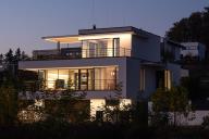 Novostavba vily je citlivě umístěna v mírně svažitém terénu pozemku s překrásnými panoramatickými výhledy do okolní krajiny.