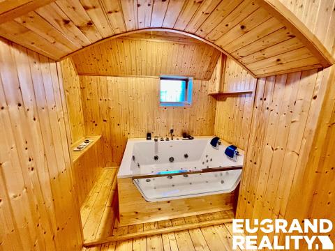 V přízemí nemovitosti se nachází 4 místnosti, zádveří, velká hala a menší chodba. Zde je také vybudován samostatně stojící sprchový kout a samostatné WC vše je zhotoveno z mramoru a stylové baterie a doplňky. Z této chodby se dostaneme do sklepa a dalším východ na zahradu.