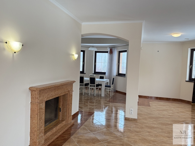 Nabízíme k prodeji exkluzivní vilu, která se nachází v klidné části obce Mezirolí, v okresu Karlovy Vary. Tento samostatný cihlový dům s přízemní dispozicí a zastavěnou plochou 178 m² nabízí celkem 5 a více pokojů, což zajišťuje dostatek prostoru pro komfortní bydlení. Interiér domu je navržen s důrazem na eleganci a praktičnost. V přízemí se nachází prostorný obývací pokoj s krbem a TV koutem, jehož součástí je vstup na terasu a do zahrady. Dále zde naleznete jídelnu, plně vybavenou kuchyni, pracovnu, ložnici, koupelnu a toaletu. V 1. patře se nacházejí tři ložnice a dvě koupelny, které jsou ideální pro rodiny, které touží po soukromí a pohodlí. Dům je vybaven moderním sytémem vytápění s podlahovým topením a v suterénu se nachází technická místnost s plynovým kotlem a centrálním vysavačem. Podlahy jsou v kombinaci dřeva a mramoru, což dává interiéru luxusní nádech. Celková užitná plocha dosahuje 350 m², což poskytuje dostatek místa pro veškeré potřeby rodiny. Zahrada, která obklopuje dům a má výměru 1148 m², je zcela oplocená a nabízí soukromí a klid pro trávení volného času či pořádání rodinných akcí. Nemovitost byla zkolaudována v roce 2009 a je ve velmi dobrém stavu, což zaručuje bezproblémové bydlení. Tato vila představuje ideální volbu pro všechny, kteří hledají kvalitní a moderní bydlení v krásném prostředí. V případě zájmu o prohlídku nás neváhejte kontaktovat.