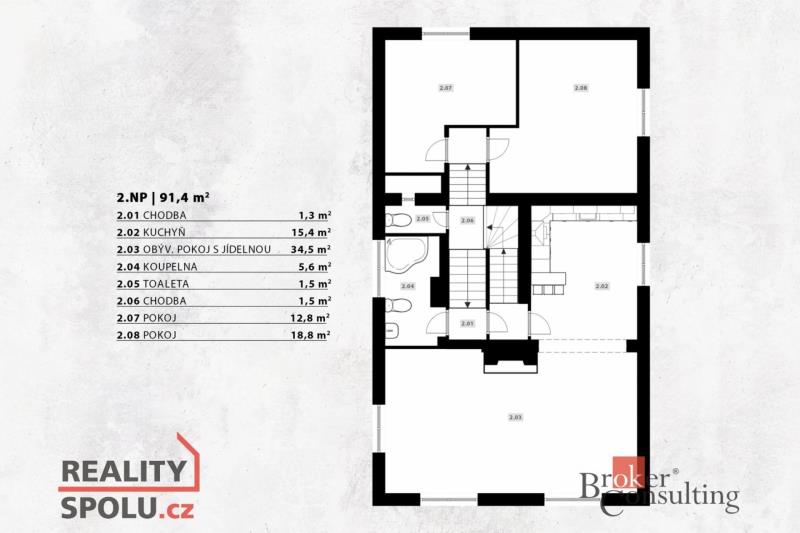 2. NP: byt 3+1 s koupelnou a toaletou,