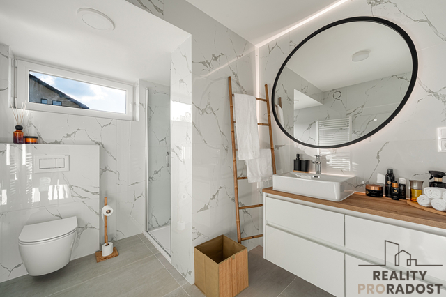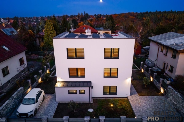 Exkluzivní vila v Říčanech – prémiové bydlení v klidné lokalitě u Prahy Nabízíme k prodeji výjimečnou novostavbu v prestižní lokalitě Říčany, dlouhodobě hodnocené jako jedno z nejlepších míst pro život v České republice. Nemovitost se nachází v klidném prostředí plném zeleně, s důrazem na soukromí a komfort, v docházkové vzdálenosti od oblíbeného areálu Koupaliště Jureček. Architektura a dispozice: Moderní vila kolaudovaná v roce 2026 zaujme nadčasovou architekturou, důrazem na proporce, detail a kvalitní materiály. Dům je rozdělen na dvě samostatné bytové jednotky, každá s vlastním vjezdem i parkováním, což nabízí flexibilitu pro vícegenerační bydlení či investiční využití. Přízemí: samostatná bytová jednotka ložnice koupelna kuchyň s jídelnou prostorný obývací pokoj s francouzským oknem a přímým vstupem na zahradu technické zázemí s WC prostorná komora 1. patro: hlavní bytová jednotka vstupní hala obývací pokoj s přístupem na terasu jídelna kuchyně koupelna 2. patro: hlavní ložnice s šatnou dva další pokoje luxusní koupelna s vanou Zahrada a exteriér: Zahrada nabízí dostatek prostoru pro individuální realizaci – bazén, jezírko, okrasnou i užitkovou zeleň dle vlastních představ. Technologie a standard: Nemovitost splňuje nejvyšší současné standardy, které podtrhují nejen komfort bydlení, ale i mimořádně nízké provozní náklady a energetickou efektivitu. fotovoltaická elektrárna tepelné čerpadlo podlahové vytápění rekuperace klimatizace venkovní elektrické žaluzie wallbox pro elektromobil vysokorychlostní internet kamerový systém Nemovitost, která přirozeně zapadá do segmentu prémiového bydlení a nabízí ideální kombinaci klidu, soukromí a dostupnosti Prahy.