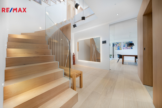 Nabízíme k prodeji výjimečnou třípatrovou vilu o celkové užitné ploše 320 m², která se nachází v klidné a vyhledávané rezidenční čtvrti Prahy – Malešic. Tato nemovitost splňuje nejvyšší nároky na moderní bydlení a nabízí ideální kombinaci prostoru, technologií a komfortu. Dominantou domu je hlavní bytová jednotka o dispozici 6+kk, která poskytuje dostatek místa i pro vícečlennou rodinu. Součástí vily je také plně vybavená wellness zóna zahrnující vířivku, saunu a odpočívárnu, která umožňuje dokonalý relax v soukromí. Kromě hlavního bytu je součástí domu i samostatně oddělitelný byt 2+kk, ideální pro hosty, au-pair nebo jako investiční prostor pro krátkodobý pronájem. Dům je vybaven nejmodernějšími technologiemi – fotovoltaickou elektrárnou, systémem rekuperace a tepelným čerpadlem. Celý objekt funguje jako chytrá domácnost, která umožňuje kompletní ovládání technologií přes mobilní aplikaci. K vile náleží udržovaná zahrada s venkovním posezením, která nabízí příjemné soukromí i prostor pro společenské aktivity. Parkování je zajištěno na třech vyhrazených místech přímo u domu. Tato nemovitost je ideální volbou pro rodinu, která hledá výjimečné bydlení s vysokým standardem a preferuje klidné, ale dobře dostupné prostředí.