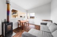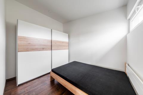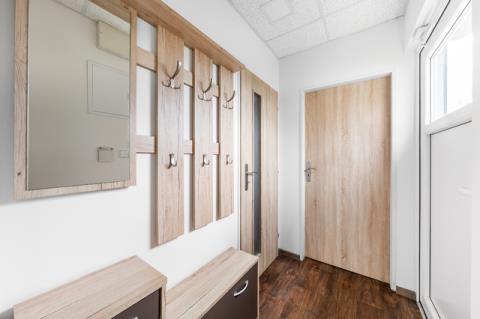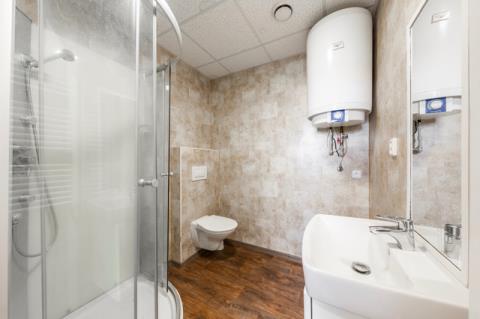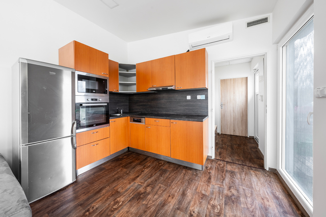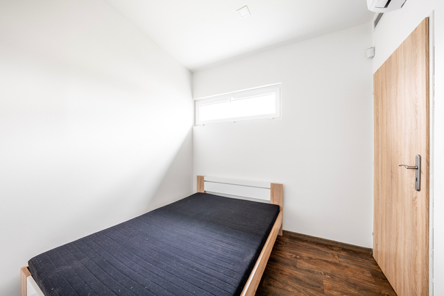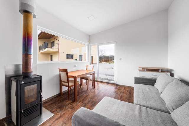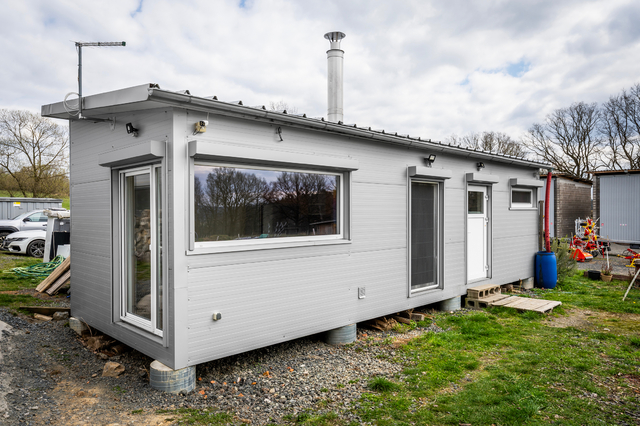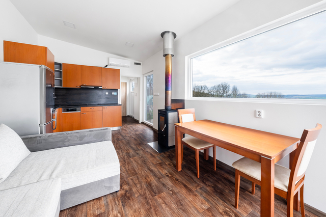 Nabízíme k prodeji energeticky úsporný mobilní dům vybavený veškerým nábytkem a spotřebiči. Díky zateplené a stabilní konstrukci bez podvozku je vhodný pro celoroční užívání. Mobilheim byl vyroben na zakázku, má dispozici 2+kk a vnější rozměry 10,5 × 3,8 metru. Vnitřní uspořádání zahrnuje prostorný obývací pokoj s kuchyňským koutem, ložnici, předsíň a koupelnu s toaletou. Konstrukce mobilheimu odpovídá výrobkům s funkcí stavby. Základ tvoří svařovaný ocelový rám. Podlaha je vyrobena z ocelových profilů, které jsou vyplněné tepelnou izolací a překryté OSB deskami a linoleem. Stěny jsou sendvičového typu, tvořené polyuretanovými panely, doplněné o vnitřní kovový rám a sádrokartonové desky. Tento systém zajišťuje dobrou tepelnou i zvukovou izolaci. Strop je rovněž zateplený a tvořený kombinací polyuretanových panelů a vnitřní povrchovou úpravou. Okna i dveře jsou plastová, přičemž všechna okna jsou vybavena elektricky ovládanými předokenními žaluziemi. Mobilheim je nabízen s kompletním vnitřním vybavením, včetně kuchyňské linky s elektrickou varnou deskou, digestoří, elektrickou troubou, mikrovlnnou troubou, myčkou nádobí a lednicí s mrazákem. V ceně je rovněž zahrnut nábytek a ostatní spotřebiče dle fotografií. Disponuje také systémem zabezpečovacího zařízení s pohybovými senzory. Hlavním zdrojem vytápění je tepelné čerpadlo typu vzduch–vzduch. Pro zpříjemnění atmosféry v chladnějších měsících jsou v obývacím pokoji navíc instalována krbová kamna na tuhá paliva. Komfortní vnitřní klima bez ztrát tepla podporuje rekuperační jednotka, která průběžně zajišťuje výměnu vzduchu v interiéru. Vodu ohřívá elektrický bojler umístěný v koupelně. Dům je připojen na inženýrské sítě – vodu, elektřinu i odpad. Je rovněž zkolaudovaný jako stavba, která splňuje veškeré legislativní požadavky, což umožňuje případné financování prostřednictvím hypotečního úvěru nebo jiného úvěrového produktu (vždy dle podmínek konkrétní banky). Mobilheim je připravený k převozu na nové místo. Cena je na vyžádání u makléře. Možnost odpočtu 21 % DPH. Pozemek není součástí prodeje. Pro bližší informace či domluvení prohlídky volejte na uvedený mobilní telefon. Pro zjištění rozměrů místností a objektů v prostoru využijte možnost měření ve virtuální prohlídce pomocí ikony pravítka v levém dolním rohu.