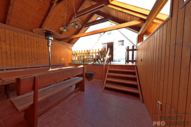 Terasa – rozdělena na dvě části: zastřešená pro posezení ve stínu a otevřená s výhledem na vinohrady, ideální pro ranní kávu nebo večerní sklenku vína.