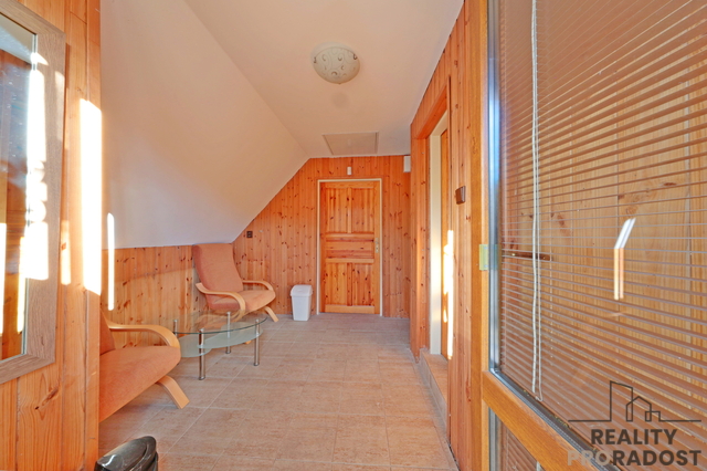 2. nadzemní podlaží – klimatizovaný pokoj s pěti lůžky, sedací soupravou, koupelna se sprchou a WC, relaxační kout.