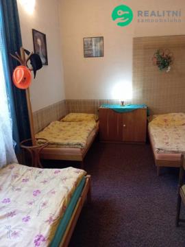 Prodám patrový dům. Patro 6+1 (penzion), místnost s krbovými kamny s výměníkem a barovou kuchyní, společná kuchyně, tělocvična, 5x pokoj, 3x koupelna, 3x WC. Přízemí 6x technické místnosti – sklady vč. WC a sprchy, 1x místnost s WC a koupelnou s vlastním vchodem (příprava na dokončení bytové jednotky). Dům má zahradu s velkou pergolou, čtyři samostatné vchody. Zastavěná plocha domu je 775 m², je vhodný jak pro okamžité bydlení, tak i pro komerční využití (ubytování/apartmány/výroba). Dále nabízíme k prodeji menší domek 2+kk 50 m² v těsné blízkosti budovy, taktéž k bydlení. Celková výměra pozemku je 2132 m², mimo zastavěných ploch patrového a menšího domku. Další součástí komplexního prodeje, je i sousedící parcela o rozloze 1417 m² vše nacházející se v údolí mezi lesy v obci Čaková okr. Bruntál. Nemovitost se nachází v podhůří Jeseníků, nedaleko od lyžařských areálů Malá Morávka a Praděd, Lázní Karlova Studánka a vodní nádrže Slezská Harta“. Vlastní studna s pitnou vodou. Vytápění prvního patra v prostorech penzionu je ústředním topením, buď pomocí plynu, pevnými palivy nebo i krbovými kamny s výměníkem. Kanalizace – velká jímka. Elektřina 220/380…jistič 40A, internet. V blízké době bude zahájena výstavba přehrady v Nových Heřmínovech ve vzdálenosti asi 1km. Prodej možný včetně podnikatelských oprávnění.
