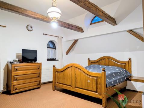 HISTORICKÉ FOJTSTVÍ V HODSLAVICÍCH Unikátní dům pro bydlení i podnikání Dům s příběhem v rodišti Františka Palackého. Hledáte nemovitost, která má charakter a zároveň nabízí možnosti podnikání? Toto unikátní fojtství prošlo citlivou rekonstrukcí a dnes propojuje tradiční architekturu s moderním komfortem. Dispozice domu: Přízemí: - Stylová hospůdka se salonkem pro cca 40 hostů - Zázemí kuchyně - Venkovní terasa pro posezení 1. patro - Byt 1+kk (30 m²) - Penzion se 3 apartmánovými pokoji pro až 10 osob - Přístup vnitřním kamenným schodištěm i přes dřevěnou pavlač Podkroví (2NP) Byt 2+kk (75 m²) s harmonickým spojením historických prvků a moderního designu Základní údaje: - Pozemek: 754 m² - Zastavěná plocha: 187 m² - Třípodlažní objekt po rekonstrukci ! Možnosti využití Rodinné bydlení s možností provozu penzionu Pokračování stávající hospůdky Pronájem bytů nebo přestavba penzionu na další jednotky Výjimečná nemovitost s atmosférou a potenciálem Fojtství nabízí jedinečnou kombinaci historického ducha a moderního komfortu, ideální pro bydlení i podnikání. Přijďte se osobně přesvědčit o kouzlu tohoto domu!