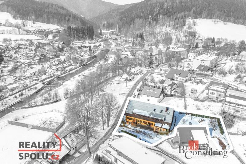 Nabízíme k prodeji výjimečně prostorný dům v malebném horském městečku Horní Maršov – místě, kde se snoubí klid, příroda a celoroční turistický ruch. Na první pohled působí jako rodinný dům s velkorysým zázemím. Při bližším pohledu ale zjistíte, že nabízí mnohem víc. Může se stát skutečně komfortním vícegeneračním bydlením, chalupou pro velkou rodinu nebo chytrou investicí s možností pravidelného příjmu z ubytování. Dům má 3 nadzemní podlaží a 1 podzemní podlaží, celkovou kapacitu až 38 lůžek a prošel rozsáhlou rekonstrukcí v roce 2010 (nové rozvody topení, elektroinstalace, vody, kompletní koupelny, plastová okna a dveře, komín, terasy, úpravy pozemku a další). Kolaudace proběhla v roce 1987. V přízemí se nachází prostorná jídelna s barem, kuchyně, sklady, zázemí, 2× WC, dále samostatný apartmán (cca 40 m², 2 pokoje, předsíň, koupelna). Nechybí kotelna, lyžárna, dílna/sklad a technické prostory. Ve druhém nadzemní podlaž jsou pokoje, které lze využít jako ložnice, dětské pokoje či hostinské pokoje, sklad a sušárna. Ve třetím nadzemní podlaží je apartmán (cca 40 m²) a navazující půdní prostor s potenciálem dalšího využití. Suterén disponuje třemi vytápěnými místnosti, které jsou vhodné pro skladování, dílnu či hobby zázemí. Terasovitě upravená zahrada o celkové výměře 1 366 m² nabízí dvě velké rovinné plochy pro venkovní posezení, bazén, dětské hřiště nebo relaxační zónu. K dispozici jsou dvě terasy, dva vjezdy na pozemek a parkování minimálně pro 6 automobilů. Lokalita je velmi vyhledávaná milovníky hor, turistiky, cyklistiky i zimních sportů, což z ní dělá ideální místo nejen pro život, ale i pro podnikání. Pokud hledáte opravdu velký dům s variabilním využitím – pro rodinu, rekreaci nebo jako investici s potenciálem výdělku – tahle nemovitost vás může příjemně překvapit. E. štítek zatím nebyl zpracován, proto uvádíme G. Rádi vám ji osobně představíme. Přijďte se podívat a objevte její možnosti na vlastní oči.