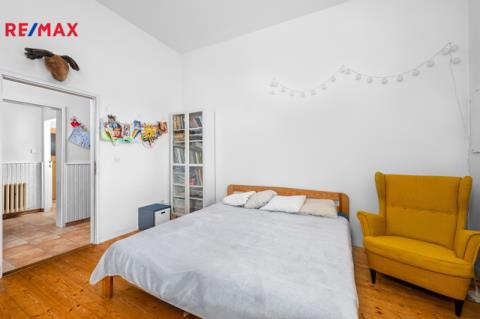 Samostatný vchod vedle hlavního vstupu má v přízemí i bytová jednotka, která je momentálně využívaná k trvalému bydlení. Tato jednotka má dispozici 3+1.