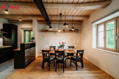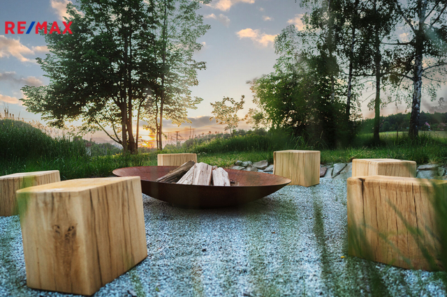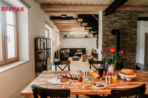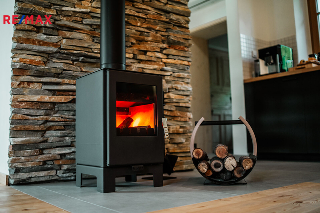 Pro navození pohodové atmosféry, a jako záložní zdroj, vytápění má nemovitost krbová kamna. Velmi pěkně vypadá designové schodiště na míru, které dotváří a podtrhuje celý funkční celek.