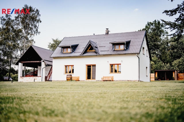 Na pozemku se dále nachází přilehlá budova, která slouží jako sklad, technické zázemí, úložiště kol, lyží, dřeva a garáž pro traktor. Možnost využití půdních prostorů. Součástí je zastřešení, kde je koupací sud s dohřevem proti zamrznutí a krytá pergola s plynovým grilem a posezením.