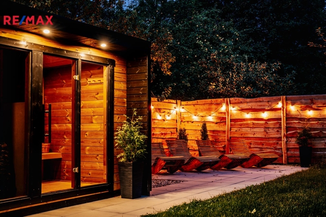 Na pozemku se nachází finská sauna s odpočívárnou. Součástí je zpevněná venkovní zóna s celoročně využitelnou sprchou s dohřevem proti zamrznutí. Dále je na pozemku stylové ohniště s posezením.