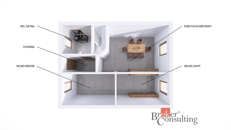 Vinný sklípek s apartmánem 3+kk a výhledem na Pálavu Nabízím k prodeji vinný sklípek s moderním apartmánem o dispozici 3+kk, který byl vybudován nad zrekonstruovaným klenutým vinným sklepem. Nemovitost se nachází přímo mezi vinohrady na velmi klidném místě s krásným výhledem na Pálavu. V docházkové vzdálenosti (cca 1,5 km) se nachází známé vinařství Sonberk. Apartmán nabízí obývací prostor s kuchyňským koutem, dva samostatné pokoje a prostornou koupelnu. Součástí jsou vinylové podlahy, dřevěná okna s dvojskly, vytápění řešeno klimatizací s funkcí topení a elektrickými přímotopy, ohřev vody zajišťuje bojler 80 l. Před apartmánem se nachází terasa s pergolou a grilem s krásným výhledem na okolní vinohrady. Nemovitost je vhodná jak pro vlastní rekreaci, tak jako investice s krátkodobým pronájmem.