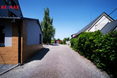 Kryté stání pro 3 vozidla, venkovní zpevněné plochy cca 300 m2 pro parkování dalších automobilů, přívěsů, karavanů a podobně. Dva na sobě nezávislé komfortní vjezdy do areálu z celoročně udržované asfaltové silnice.