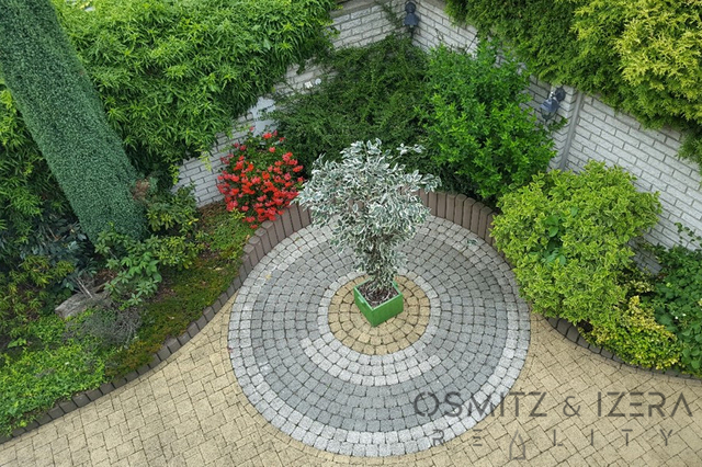 • Zahrada: V zadní části pozemku je upravená menší zahrada s jezírkem a posezením.