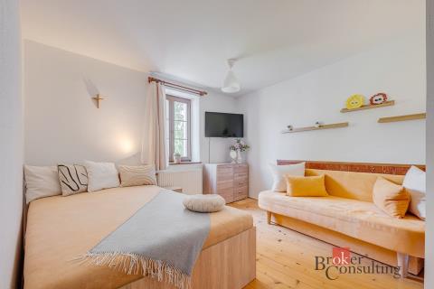 Díky nízké pořizovací ceně nemovitosti dosahuje výnos z pronájmu nadstandardních hodnot (detailní kalkulace rádi zašleme). Střízlivý odhad čistého výnosu z kratkodobého pronájmu vychází okolo 9-11 % před zdaněním (ve výnosu jsou započítány i náklady na přestavbu podkroví na 4. apartmán). 254 m2 užitné plochy, (327 m2 celkové plochy), 3 zcela samostatné bytové jednotky či apartmány a velký podkrovní prostor s potenciálem 4. apartmánu. Zahrada o velikosti 491 m2. To je krásný apartmánový dům na Šumavě, který je aktuálně k prodeji. Celá nemovitost se skládá z volarské roubenky alpského typu (v perfektním stavu!) a pak ze zděné dvoupodlažní budovy z počátku 20. století. Dům je zateplený, po relativně nedávné rekonstrukci, pečlivě udržovaný a v dobrém stavu. Roubenka má dispozici 2kk, dolní bytová jednotka zděného domu 3+1 a horní 4+1. Dům disponuje také řadou dalších technických místností jako garáž, sklep, kotelna, velká dílna nebo prádelna. Zvlášť atraktivní je velkorysý půdní prostor, který nabízí možnost 4. apartmánu s vysokými stropy a krásnými výhledy do okolí. Nemovitost je ideální pro krátkodobý či dlouhodobý pronájem nebo také jako dvougenerační pro velkou rodinu. Nachází se v klidné a zelené části obce Volary. Najdete zde plnou občanskou vybavenost, zastávku autobusu i vlaku. Oblast je ceněná turisty - v zimě lyže na Šumavě (15 minut od sjezdovky), v Německu (40 minut) nebo v Rakousku (30 minut), v létě krásná příroda včetně Boubínského pralesa nebo Lipna.