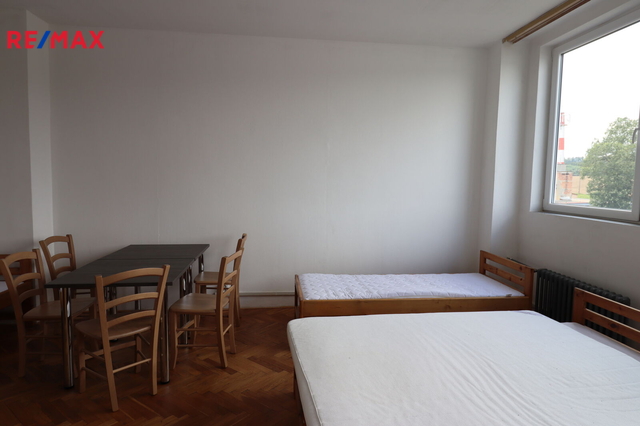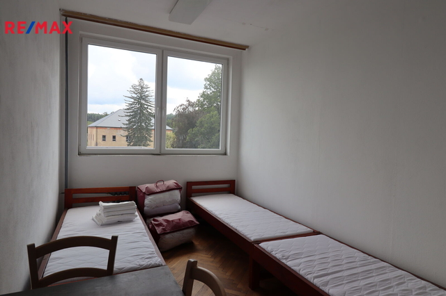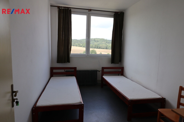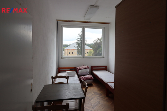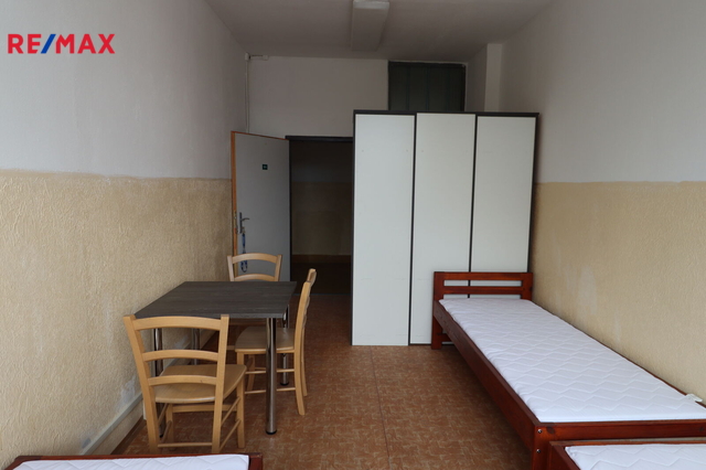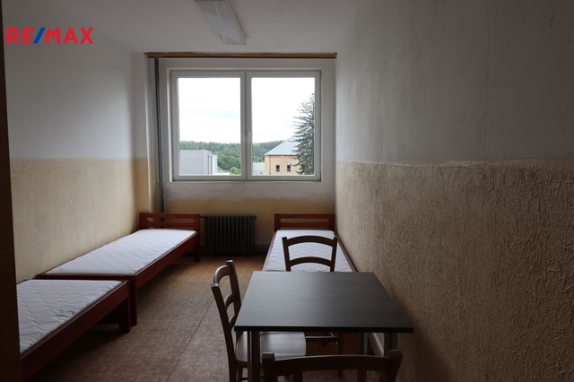 Nabízíme k prodeji objekt občanské vybavennosti, využívaná jako ubytovna. Objekt je čtyřpatrový, celý podsklepený. Spodní podlaží je zčásti zapuštěné do terénu a obvodové zdi jsou nově tepelně izolovány extrudovaným polystyrénem 100 mm a vnější část plní také funkci hydroizolace suterénu. Jižní část je s vjezdovými vraty do suterénního halového prostoru. Za halovým prostorem je místnost kotelny a kompresorovny. V kotelně je instalován kondenzační plynový kotel DeDietrich DTG 130-65 ECO.NOX Plus 65 kW a kondenzační ohřívač TUV 80 kW s nerezovým zásobníkem tank in tank od firmy ACV Heatmaster HM85TC, který je také napojen do vytápění pro případ výpadku hlavního kotle. Pro havarijní situaci je ještě instalován elektrický teplovodní kotel 18 kW.Přízemí je vyvýšené nad terén, disponuje centrální chodbou v celé délce podlaží, ze které se vstupuje do jednotlivých místností, prostor a současně jsou z chodby vstupy na dvě samostatná schodiště. V jižní straně centrální chodby jsou po obou jejích stranách vstupy do připravovaných jednoduchých bytových jednotek s kuchyňkami a koupelnou, avšak se společným WC přístupným z centrální chodby Na západní straně je za jednoduchou bytovou jednotkou samostatná místnost a za ní je místnost recepce s uloženými klíči, switchem OMADA pro řízení distribuovaných přístupových bodů WIFI do 1 Gb. Tyto body obsluhují celou plochu všech pater trunkovým principem předávání si uživatelů Wifi. Prostory v druhém nadzemním podlaží nebyly žádným způsobem upravovány. Východní strana všech místností v II.NP je ještě jako jediná bez vyměněných stávajících oken za nová plastová - vyzdění Ytongem po odstraněných meziokenních výplní, montáž nových plastových oken, zateplení ostění + vnitřní parapety. Kapacita III. NP a IV. NP je vybavena jako ubytovna s počtem lůžek (bez možných přistýlek) se samostatnou místností sušárny pro přirozené sušení prádla. Pokoje jsou vybaveny lednicemi s oddělenou mrazničkou a lednice je umístěny v společné předchodbě pokud ji mají pokoje nebo samostatně v pokoji. Každý ubytovaný má k dispozici samostatnou skříň s nástavcem. Celkový počet lůžek na III. NP je 79 a IV.NP 74 při splnění hygienických norem. Na jihovýchodním rohu pozemku jsou zbudovány 4 obezděné boxy pro instalaci podzemních nádrží na LPG. Jedna nádrž LPG je již dodána a instalována. 4 ks plných LPG nádrží jsou schopny zabezpečit vytápění po celý rok v případě výpadku zásobení zemním plynem. Pro zprovoznění je nutno od zásobníku vést plynou fázi do objektu (kotelny) a připojit samostatný kotel na propan – butan (LPG) připojený do topných rozvodů vytápění. Zároveň je vedle stávajícího domečku plynoměru plocha pro případnou instalaci generátoru elektrické energie na LPG. Podél východní strany objektu je vedena páteřová kanalizace s revizními poklopy vyvedená do splaškové kanalizace vedoucí do ČOV Nové Zákupy. V případě zájmu volejte makléři nabídky.
