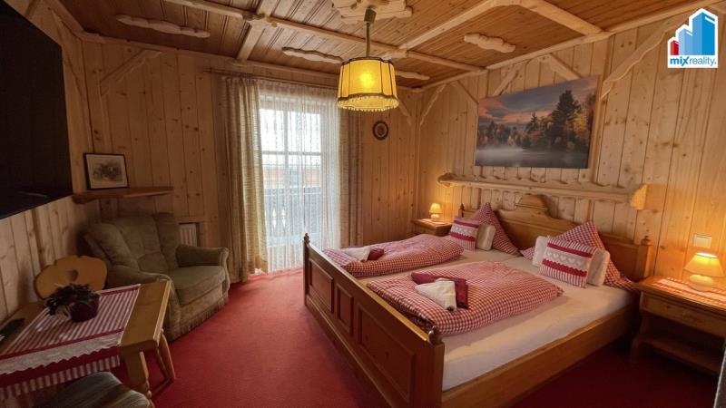 Výjimečná investiční příležitost. Naše realitní kancelář Mixreality nabízí k prodeji jedinečný hotelový areál v atraktivní turistické lokalitě Bavorského lesa, přímo pod oblíbeným sportovním areálem Geißkopf. Nemovitost se nachází přibližně 30 minut od Železné Rudy a představuje mimořádnou investiční příležitost v oblasti s celoroční turistickou návštěvností. Areál tvoří dva samostatné objekty, každý s vlastním pozemkem a výhledem na horu Geißkopf. Celková kapacita ubytování je přibližně čtyřicet ubytovacích jednotek, které zahrnují dvoulůžkové a třílůžkové pokoje, apartmány i samostatné byty. Hlavní budova slouží jako hotel s restaurací a pokoji pro hosty. Druhá budova má dva samostatné vchody a je vedena jako obytný dům s prostory pro podnikání. Jedna část nabízí další pokoje pro hosty, druhá část je tvořena byty a apartmány. Oba objekty jsou navzájem propojeny sklepní částí, zároveň však mohou fungovat i zcela samostatně. Součástí areálu je oblíbená restaurace nabízející českou i bavorskou kuchyni, wellness zázemí se saunou, posilovna, seminární místnost, dětské hřiště, garáž a přístřešek pro motorky. Příjemnou atmosféru celého místa doplňuje upravená zahrada s jezírkem, vodopádem a okrasnými KOI kapry. K nemovitosti náleží také stavební pozemek s venkovním bazénem a stylovým dřevěným altánem, který nabízí další možnosti rozšíření nebo vybudování doplňkových služeb pro hosty. Další pozemek u hlavní budovy zahrnuje nově postavenou stodolu, která je aktuálně využívána pro chov zvířat. Tento prostor může být využit například pro agroturistiku, ekologické hospodaření nebo koncept ekohotelu s vlastní bio produkcí. Lyžařský areál Geißkopf se nachází přibližně 500 metrů od hotelu a nabízí několik kilometrů upravených sjezdovek, snowpark, sáňkařskou dráhu i moderní lanovky. Lokalita je vyhledávaná nejen v zimní sezóně, ale také v létě, kdy se oblast mění v centrum outdoorových aktivit. Geißkopf je známý jedním z nejlepších bikeparků v Evropě a okolí nabízí desítky kilometrů cyklostezek a nových e-bike tras. V blízkosti se nachází také unikátní 3D lukostřelecký park v lese, golfové hřiště vzdálené přibližně deset minut jízdy a mnoho dalších turistických atrakcí. Celková užitná plocha objektů činí přibližně 1 746 m², zastavěná plocha 780 m² a celková plocha pozemků přibližně 1 995 m². K areálu náleží také rozsáhlá zahrada o rozloze 7 834 m², která poskytuje dostatek prostoru pro relaxaci hostů i další rozvoj podnikání. Nemovitost je ideální pro investory hledající zavedený hotelový provoz v atraktivní turistické lokalitě, pro podnikatele v oblasti gastronomie a ubytování nebo pro zájemce, kteří chtějí spojit podnikání s životem v přírodě. Pro více informací, detailní podklady nebo domluvení osobní prohlídky kontaktujte realitní kancelář Mixreality.