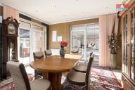 Nabízíme k prodeji velmi unikátní nemovitost, jejíž styl je naprosto autentický a nekopírovatelný. Honosné vícegenerační sídlo, rozprostírající se na třech podlažích dosud sloužilo jako rodinný dům. Možná nastal čas na změnu a využít tuto prodejní příležitost k investici, která následně povede ke krátkodobému pronájmu s výnosem zajímavých částek. Součástí komplexu je wellness s celoročním vyhřívaným bazénem (solární panely), saunou, společenskou místností a dobře vybaveným barem. Na famózní zahradě se krom dostatku soukromí i prostoru pro venkovní aktivity nachází také masivní krb, altánek, zastřešené technické zázemí, které lze využít i jinak, stylová garáž, zastřešené stání a mnoho další parády. Celý pozemek je oplocen. Na přilehlém dvorku je kvalitní a udržovanou zámková dlažba, kde také najdete kryté stání.