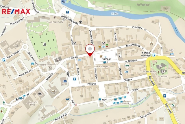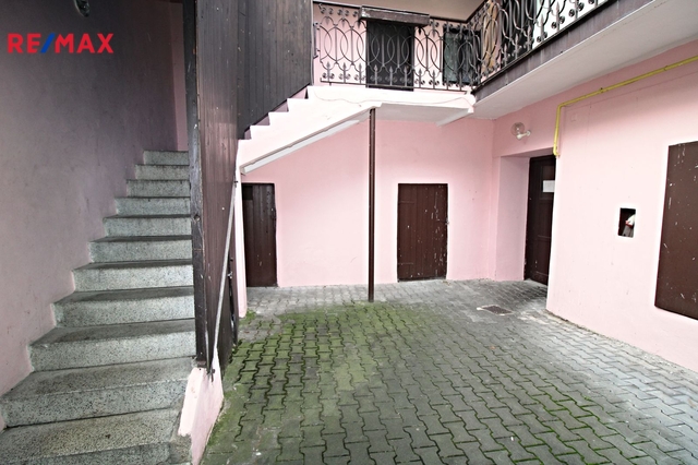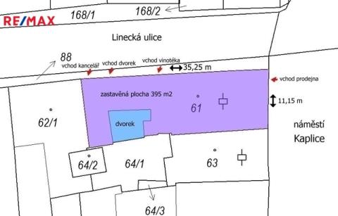Nabízíme ke koupi nemovitost vhodnou k širokému komerčnímu využití nacházející se přímo v centru města Kaplice v okrese Český Krumlov. Objekt, tvořící roh náměstí je dvoupodlažní, částečně podsklepený, v dobrém stavu. Celková zastavěná plocha včetně dvorku je 395 m2. V přízemí se nachází větší prodejna se samostatným vchodem z náměstí 120 m2. V současné době využívaná jako prodejna textilu. Sestává se z prostorné prodejní místnosti, chodby, skladu a sociálního zařízení. Dále se v přízemí se vstupem z boční Linecké ulice nachází další komerční prostory 61 m2, které byly využívány jako vinotéka. Sestávají se ze vstupní přepažené místnosti, kuchyňky, skladu, kanceláře a sociálního zařízení. Vchodem z boční ulice se také vchází průchodem do menšího uzavřeného dvorku odkud je po kamenném venkovním schodišti umožněn přístup do patra na pavlač 15,3 m2, ze které se vchází do místností, sloužících jako prádelna se sušárnou 19,3 m2 a do bytové jednotky o dispozici 2+1, 60 m2. Dále na pavlač navazuje chodba 30,2 m2 odkud se samostatně vstupuje do šesti pokojů, sloužících k soukromému ubytování. Každý pokoj má vlastní sociální zařízení včetně společné kuchyňky 2,7 m2 s úklidovou komorou 0,95 m2 a skladem 1,26 m2. Rozměry samostatných pokojů se sociálním zařízením jsou 21 m2, 29,5 m2, 24 m2, 22,5 m2, 22,7 m2 a 17 m2. V 1. patře je místnost 3 m2 pro umístění plynového kotle. Recepce sloužící k ubytování se nachází v přízemí v průchodu. Z Linecké ulice se také vchází do samostatné místnosti 11,7 m2, kterou lze využít jako menší kancelář či sklad. Technický stav objektu je dobrý, v roce 2001 prošel rozsáhlejší rekonstrukcí, nová střecha, fasáda, plastová okna, topení, ve 2. NP bylo vybudováno 6 pokojů. Půdu lze zčásti v budoucnu využít k půdní vestavbě. Nemovitost je napojena veškeré veřejné sítě – voda, elektřina, kanalizace. Objekt je také napojen na plynovou přípojku, ústřední vytápění celé nemovitosti kromě bytové jednotky je řešeno 2 plynovými kotly. Byt se vytápí elektřinou, v každé místnosti je elektrický přímotop. V Kaplici ležící 11 km od hraničního přechodu Dolní Dvořiště do Rakouska se nachází veškerá občanská vybavenost. Rozsáhlost a lukrativní poloha nemovitosti nabízí mnoho možností k podnikání, je vhodná k provozování prodejen, restaurační činnosti, zřízení kanceláří a ubytovacích služeb, které jsou v Kaplici velmi žádané. Vzhledem k lokalitě a atraktivnímu umístění nemovitosti doporučuji prohlídku, kterou si prosím domluvte na telefonním čísle +420 605 252 401. S financováním Vám ráda pomohu s naším odborným hypotečním makléřem.