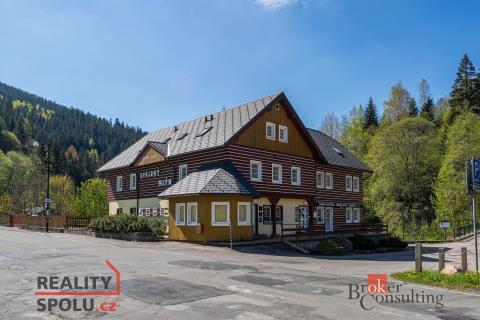 Nabízíme k prodeji prostorný horský penzion Spálený Mlýn v malebné obci Malá Úpa, jen pár minut od sjezdovek, na křižovatce turistických tras v samém srdci Krkonoš. Spálený Mlýn nabízí stabilní zázemí pro ubytování a zároveň ideální podmínky pro podnikání - např. rozšíření kapacity a případně přestavba dle vlastních představ. Nemovitost má 3 nadzemní podlaží, celková užitná plocha domu čítá 526 m² a celková plocha pozemku je 724 m². V přízemí najdete společné prostory, a to obývací kout s krbem, jídelnu s výčepem a kuchyň. Dále je tu také wellness místnost se saunou. V 1. a 2. patře se nachází hostinské pokoje, každý s vlastním sociálním zařízením a také je tu samostatná bytová jednotka, ta disponuje ložnicí, obývákem, dětským pokojem a koupelnou. V 1. patře je vstup na terasu a další venkovní posezení je také v přízemí. Součástí objektu je garáž, dostatek parkovacích míst (10-12) a navíc samostatný prostor, dříve využívaný jako minimarket. Objekt je napojen na vodojem, vytápění je řešeno elektrickými přímotopy a krbem, odpadní vody jsou svedeny do vlastní čističky odpadních vod. Nemovitost se nachází na strategickém místě – přímo u zastávky skibusu a hlavního parkoviště v Malé Úpě. Tato lokalita nabízí skvělé celoroční vyžití a je oblíbenou částí Krkonoš s výbornou dostupností. V srdci Malé Úpy, kde nové nemovitosti téměř nevznikají, představuje tato nabídka jedinečnou šanci, jak zhodnotit investici v lukrativní horské destinaci. Neváhejte mě kontaktovat pro více informací nebo osobní prohlídku. K prodeji nabízíme dva penziony - Spálený Mlýn a Penzion U Mlýna, které se nacházejí v bezprostřední blízkosti, dělí je pouze silnice. Každý z penzionů je možné zakoupit samostně za cenu 22 900 000 Kč, nebo výhodně společně za cenu 19 990 000 Kč za jeden objekt.