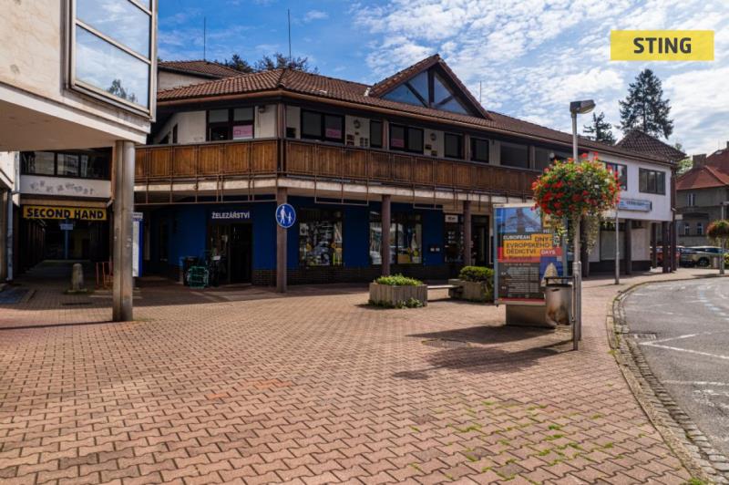 Obchodní komplex je tvořen dvěma dvoupodlažními nepodsklepenými členitými objekty A+B, propojenými spojovacím krčkem ve 2.NP. Konkrétně se jedná o zděné objekty, se sedlovou a valbovou střechou, kolaudované v roce 1996, v dobrém technickém stavu. Objekt „A“ je tvořen třemi objekty obč. vybavení, objekt „B“ je tvořen 11-ti objekty obč. vybavení , ve kterých se nacházejí obchodní prostory prodejen, restaurace, služby, sklady a příslušenství s tím spojené. Jejich propojením vzniklo celkem 8 zavedených, pronajatých provozoven (cukrárna, prodejna textilu, železářství, restaurace, prodejna hadů, výroba a prodej foto obrazů a obrazů, kadeřnictví a solárium s masážemi, vinotéka). Všechny provozovny mají veškeré sociální zázemí a jsou napojeny na vlastní IS: elektroinstalace světelná a motorová ( trafostanice pro rozvod NN), vnitřní obecní vodovod, vnitřní kanalizace, vytápění vlastním plynovým kotlem.