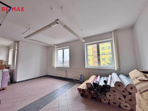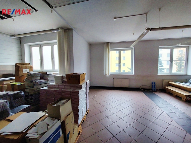 Dominantou prostoru je velká vstupní hala, která může sloužit jako hlavní obchodní prostor či kanceláře. Dále zde najdete několik menších místností, které mohou být využity například jako sklady. K dispozici je také prostorné zázemí v podobě velké kuchyně, šatny, toalety a koupelny se sprchou, což zajišťuje pohodlí pro pracovníky. Vytápění je řešeno vlastním plynovým kotlem s rozvody do radiátorů, tímto je řešen i ohřev vody. Vodovod i kanalizace jsou obecní.
