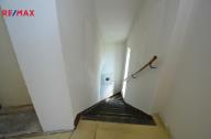 1. NP: zádveří, prostorná vstupní hala, kuchyně s jídelnou a komorou, malá koupelna, samostatné WC, úložný prostor pod schody a dvě obytné místnosti (jedna průchozí).