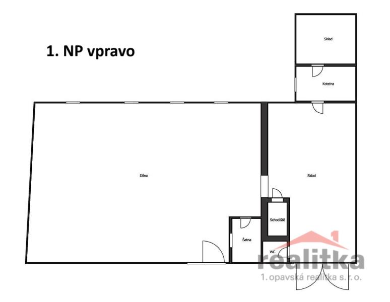 Nabízíme k prodeji průmyslový areál s administrativně-obchodní budovou v žádané části Opava – Jaktař, na ulici Přemyslovců. Základní informace: • Celková výměra pozemků: 1 376 m² • Přímý vjezd do areálu z ulice Přemyslovců • Zpevněné manipulační a skladovací plochy • Možnost parkování v areálu Areál tvoří dvoupodlažní budova kombinující obchodní, administrativní a výrobní prostory, které umožňují variabilní využití dle potřeb budoucího vlastníka. Dispozice budovy 1. NP vlevo (126 m²) Obchodní jednotka sestávající z prostorné prodejny, kanceláře, kuchyňky, koupelny, WC, skladu, garáže a kotelny. 2. NP vlevo (146 m²) Administrativní zázemí: 4 samostatné kanceláře, chodba s kuchyňkou, sociální zařízení (WC muži, WC ženy) a místnost se sprchou. 1. NP vpravo (253 m²) Prostorná dílna se skladem, šatnou, WC se sprchou, kotelnou a dalším skladovým prostorem. Aktuálně využíváno jako truhlářská dílna. Tato část budovy je částečně podsklepena. Technické informace • Vytápění zajištěno plynovými kotli • Napojení na elektřinu, obecní vodovod, splaškovou kanalizaci a plyn • Částečné podsklepení objektu Využití Nemovitost je vhodná zejména pro lehkou výrobu, skladování, sídlo společnosti s administrativním zázemím nebo kombinaci výroby a prodeje. V případě zájmu Vám rádi zajistíme výhodné financování nemovitosti. Pro více informací či sjednání prohlídky kontaktujte pana Hořínka. Prohlídky jsou možné po předchozí domluvě.