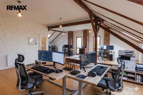 • 3. NP – 115,1 m²: podkrovní prostor (aktuálně 1+kk) s krbem, ideální jako kreativní studio, showroom či manažerské apartmá
