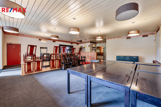 Nabízíme k prodeji obchodní prostor v Táboře, v Leskovické ulici na Náchodském sídlišti. Objekt stojí na pozemku o výměře 578 m2 a je součástí komplexu budov, který byl v 70. letech vybudován jako "Společenské centrum". V minulosti sloužily prostory jako restaurace, ale je možné je využít i jiným způsobem, třeba jako obchod. Užitná plocha 1.NP je 194 m2. Restaurace měla 85 m2, klubovna 31,5 m2, přípravna 25 m2. Ostatní plocha byla tvořena sociálním zařízením skladem, kanceláří a jinými provozními prostory Užitná plocha suterénu je cca 177 m2. Prostor tvoří sklady, příjem zboží, šatny, umývárny, chladící boxy, výtah. Na restauraci navazovala venkovní terasa s výměrou cca 80 m2. Objekt je napojen na plyn, vodovod, kanalizaci a elektrickou síť. Vytápění je plynovým kotlem. Pro celý objekt máme vyhotovený 3D scan. Z kapacitních důvodů je u inzerátu pouze 1.NP. Suterén Vám můžeme poslat. V případě zájmu o prohlídku kontaktujte makléře poptávky.