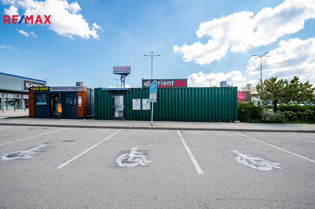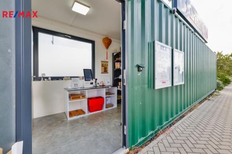 Nabízíme k prodeji kontejnerovou stavbu, která slouží jako samoobslužná prodejna a stojí na pronajatém pozemku u hypermarketu Tesco v Táboře, Soběslavská ulice 3038. Zastavěná plocha je 34,22 m2, užitná plocha 26,09 m2. Půdorysné rozměry jsou 12,19 x 2,43 m. Do hlavního prostoru určeného pro obchod se vstupuje přes prosklený turniket. Vstup do objektu je za pomocí čipové karty. Zákazník se sám obslouží, zaplatí a opustí objekt. Veškerý pohyb je monitorován. Přepravní kontejner je zateplen, vnitřní příčky jsou opláštěny sádrokartonem. Kupní cena je bez vybavení, které je možné odkoupit za cenu 100.000,-Kč bez DPH. Prodejna stojí na pronajatém pozemku, nájemné činí 15.000,-Kč/měsíc bez DPH a smlouva je na dobu neurčitou s výpovědní lhůtou 3 měsíce. Kontejner tak nemusíte užívat na současném místě, ale je možné ho kamkoli přestěhovat. Bližší informace (technická zpráva k obchodu a nájemní smlouva) Vám poskytne makléř nabídky.