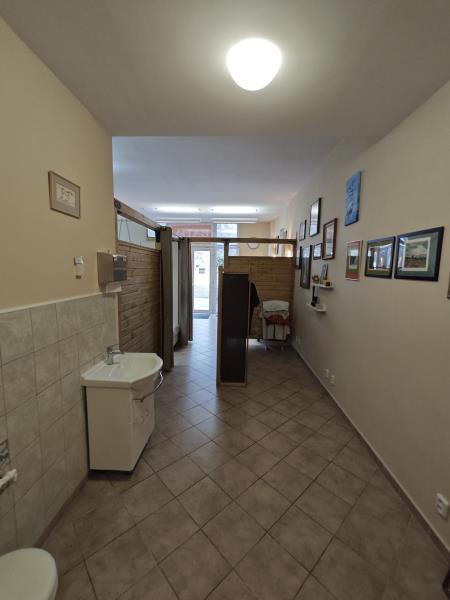 Nebytový prostor o celkové výměře 59m2 s přímým vstupem z ulice se nachází v přízemí bytového domu na sídlišti Prosek. Vstupní část tvoří malá recepce, hlavní místnost, kuchyňka a příslušenství (WC, umyvadlo, úklidová komora) a dále je zde umístěn zadní vchod do společných částí bytového domu. Velkoplošné dvoukřídlé plastové vchodové dveře s dvojskly, bezpečnostní mříží uzamykatelnou zevnitř a horním a bočním zaskleným prostorem vhodným na umístění reklamního poutače. Podlahy - dlažba, vytápění radiátory s centrálním zdrojem tepla. Prostor je bezbariérový s vysokými stropy a v současnosti je provozován jako masážní salón a kosmetika( dříve kavárna), ale nabízí se zde možnost dalšího komerčního využití, jako ordinace( dvě zastávky od nemocnice Bulovka), kancelář apod., popřípadě je zde možná i přestavba na bytovou jednotku se souhlasem SVJ, který zajistíme. Místo je výborně přístupné, autobusová zastávka přímo u domu, metro Střížkov v docházkové vzdálenosti. Provizi nehradíte, Doporučujeme